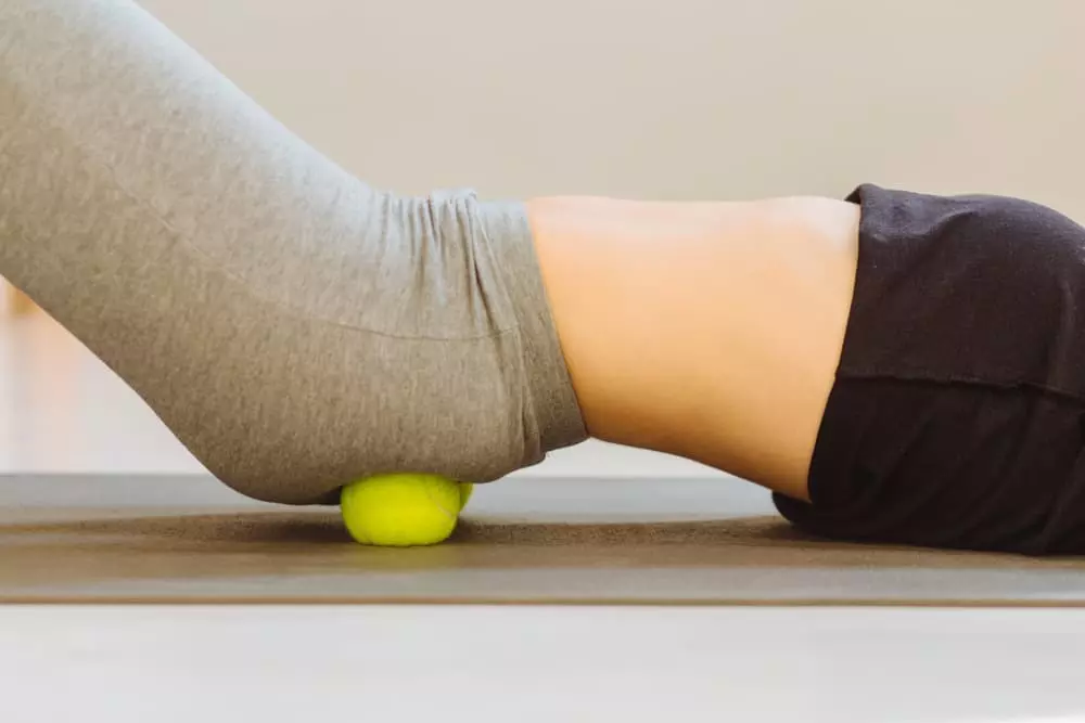 床に座り、痛みを感じるお尻の部分にテニスボールを置いて、その上に体重をかけながら転がしてみてください。